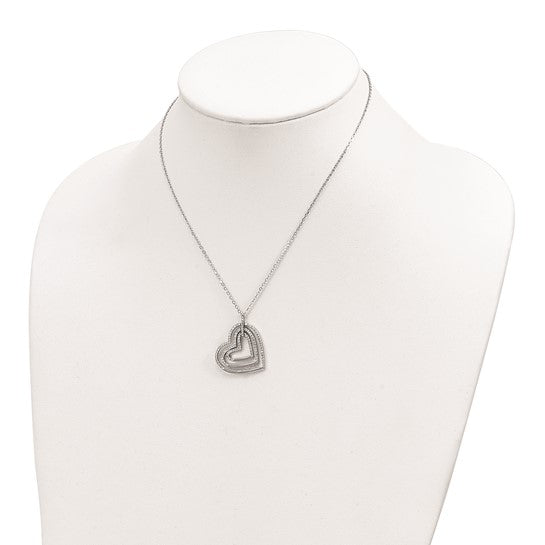 Sterling Silver Rhodium-Plated CZ Heart Necklace